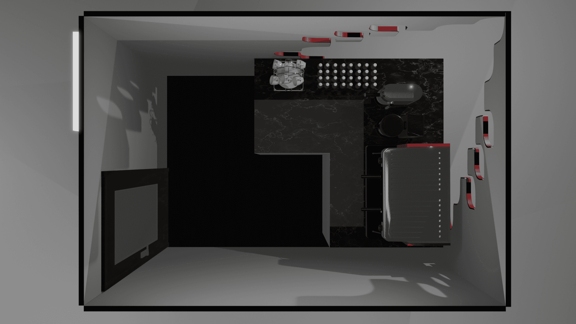 Bili Hu’s pop-up store is designed to embody the rich coffee heritage of Chikmagalur, drawing from local culture through the integration of an intricate Kolam pattern within the spatial layout and branding elements. The design language combines a refined palette of black, red, and white, complemented by marble finishes and warm wooden flooring to create a luxurious yet rooted atmosphere. The space is conceived as an immersive retail experience, where customers engage with traditional brewing methods and curated storytelling, celebrating the origins of Indian coffee while situating it within a contemporary and experiential retail setting.