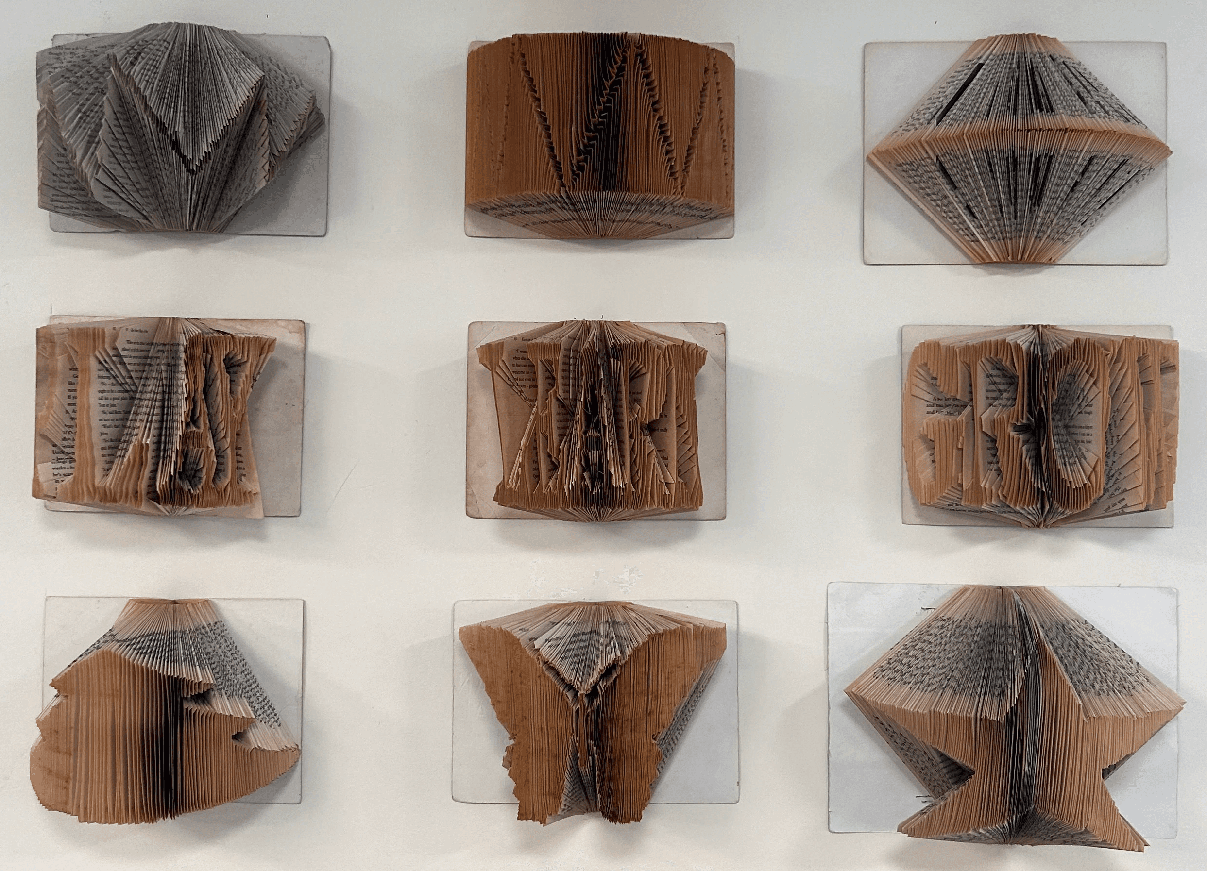Installation 2 was a captivating book wall featuring intricate book folding patterns. This installation not only served as an artistic focal point but also highlighted the company's 3 core values- play, learn & grow, with three books prominently displaying these key principles.